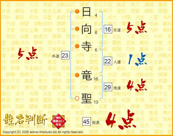 日向寺竜聖さんの総運は45画の4点!
