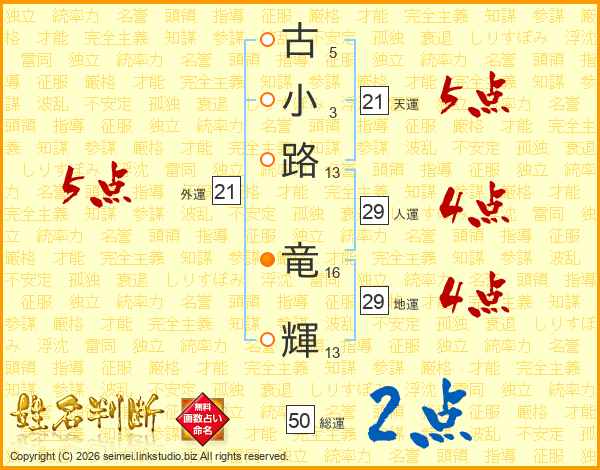 古小路竜輝さんの天運は21画の5点!