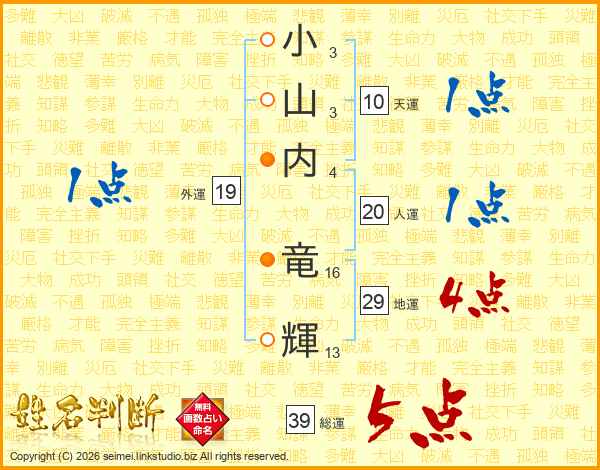 小山内竜輝さんの総運は39画の5点!