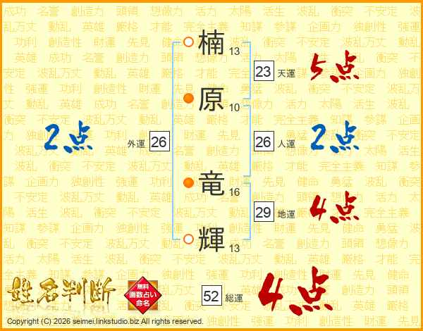 楠原竜輝さんの総運は52画の4点!