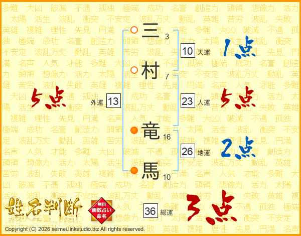 三村竜馬さんの総運は36画の3点!