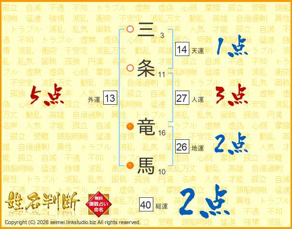 三条竜馬さんの総運は40画の2点!