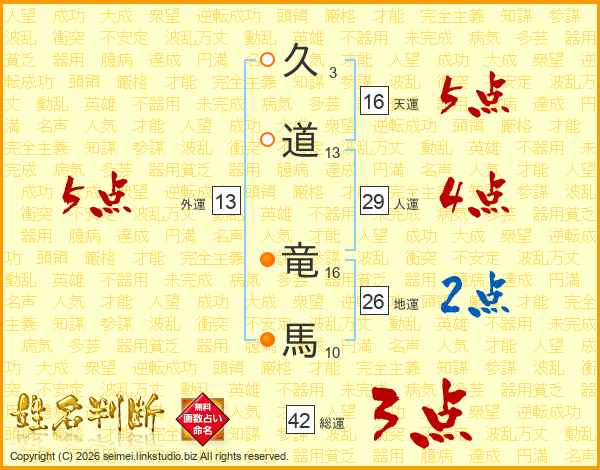 久道竜馬さんの総運は42画の3点!