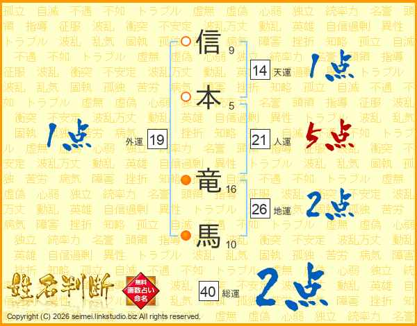 信本竜馬さんの総運は40画の2点!