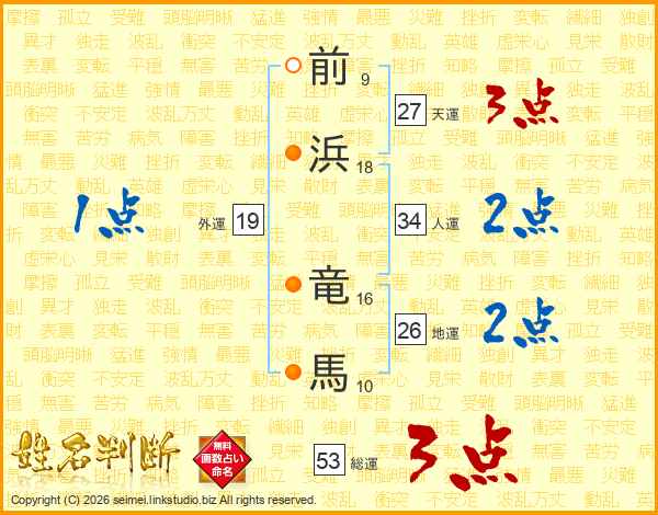 前浜竜馬さんの総運は53画の3点!