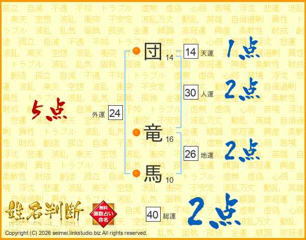 団竜馬さんの総運は40画の2点!