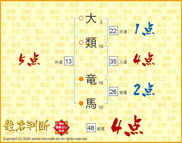 大類竜馬さんの外運は13画の5点!
