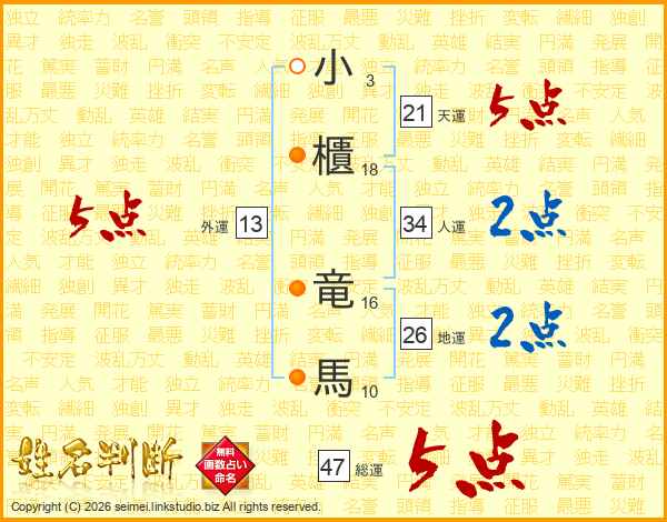 小櫃竜馬さんの総運は47画の5点!