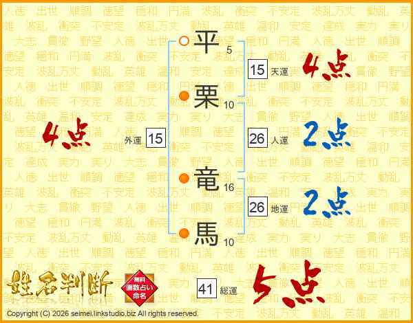 平栗竜馬さんの総運は41画の5点!