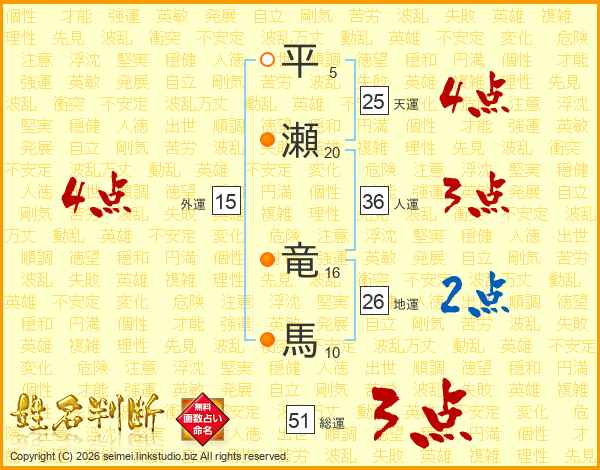 平瀬竜馬さんの総運は51画の3点!