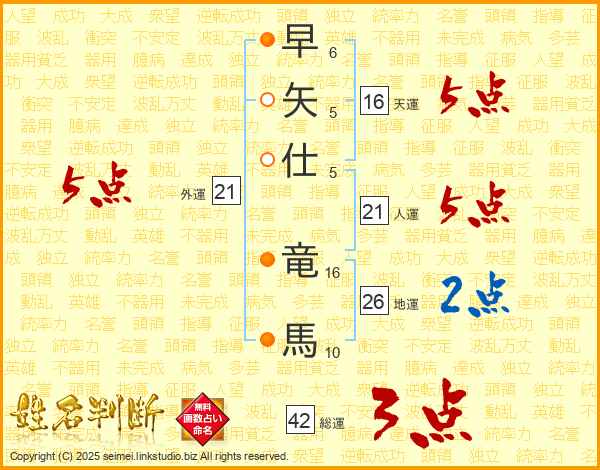 早(6画)矢(5画)仕(5画) 竜(16画)馬(10画)