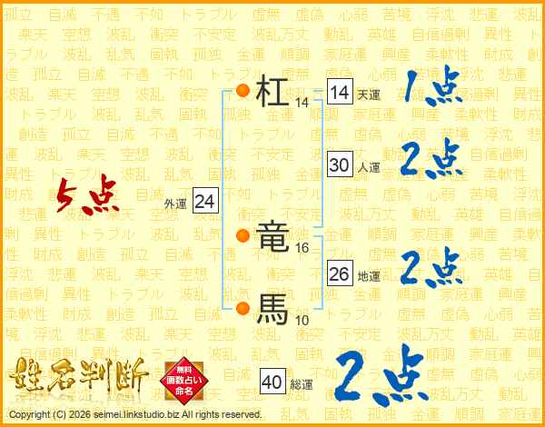 杠竜馬さんの地運は26画の2点!