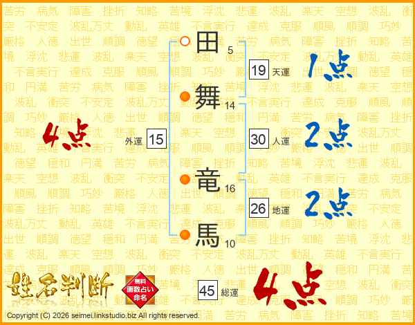 田舞竜馬さんの総運は45画の4点!