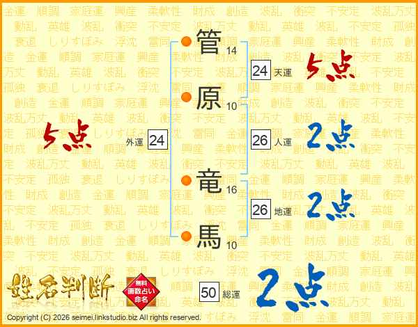 管原竜馬さんの総運は50画の2点!