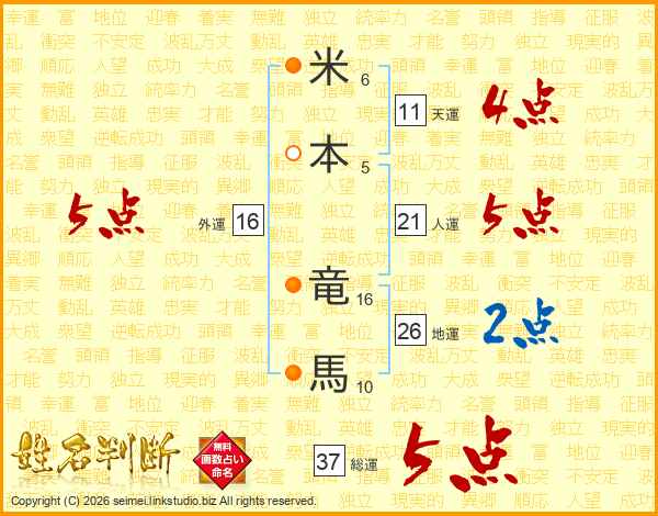 米本竜馬さんの外運は16画の5点!