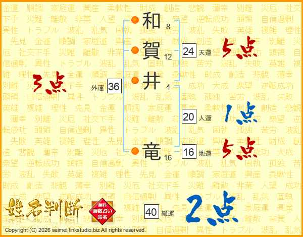 和賀井竜さんの天運は24画の5点!