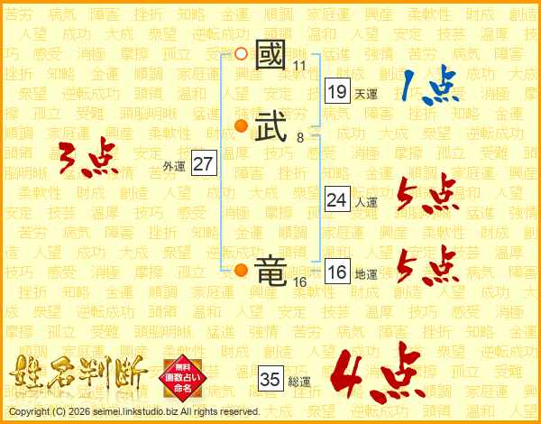 國(11画)武(8画) 竜(16画)