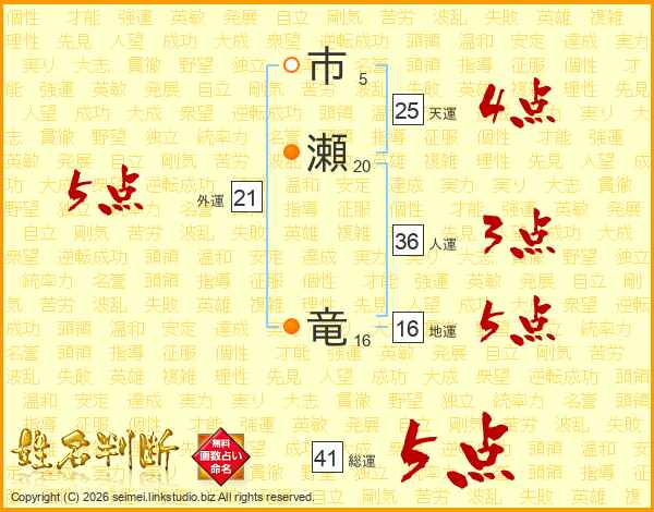 市瀬竜さんの総運は41画の5点!
