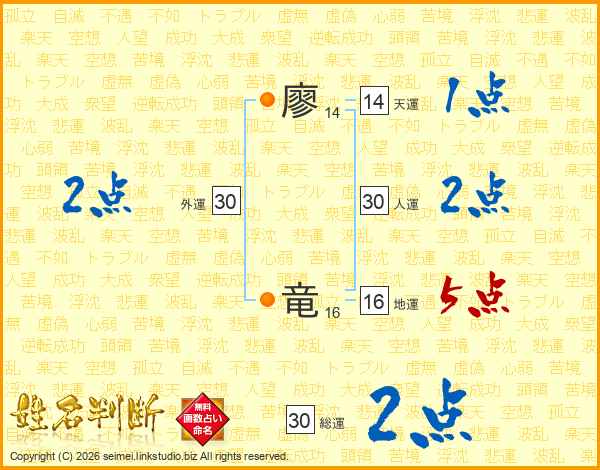 廖竜さんの総運は30画の2点!