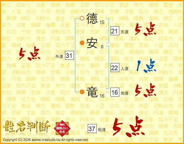 德安竜さんの総運は37画の5点!