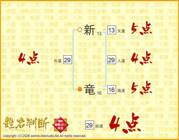 新竜さんの人運は29画の4点