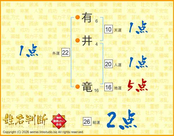 有井竜さんの総運は26画の2点!