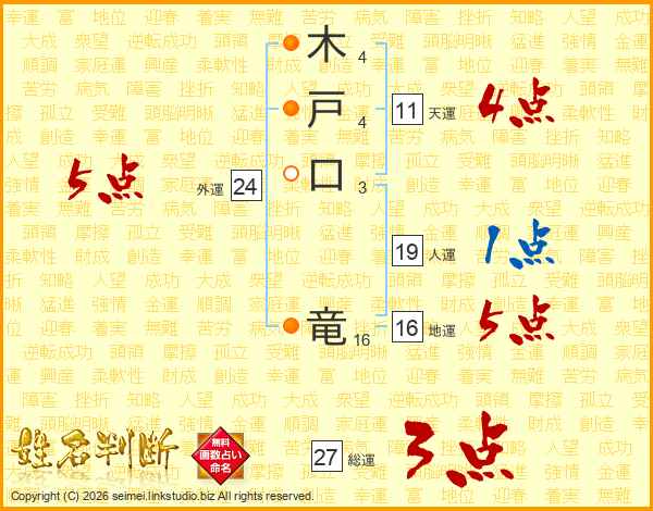 木戸口竜さんの天運は11画の4点!