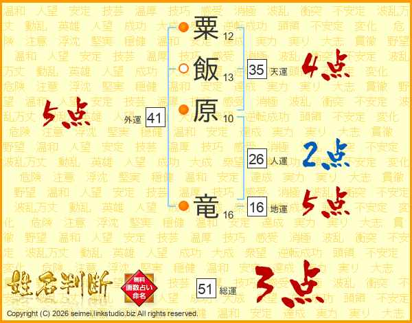 粟飯原竜さんの人運は26画の2点!