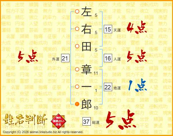 左右田章一郎さんの総運は37画の5点!