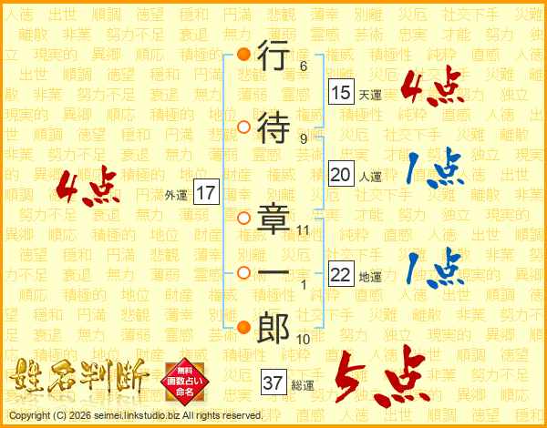 行待章一郎さんの総運は37画の5点!