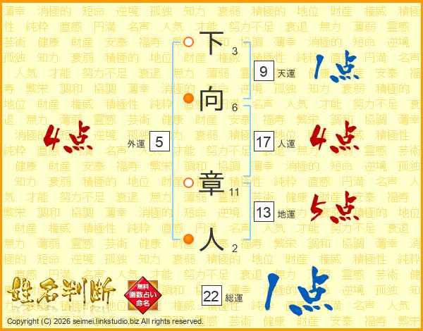 下向章人さんの総運は22画の1点!