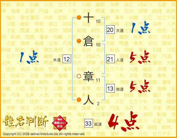 十倉章人さんの総運は33画の4点!