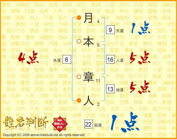 月本章人さんの総運は22画の1点!