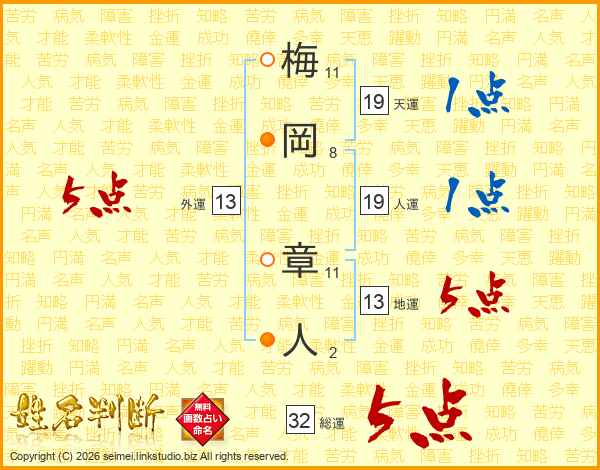 梅岡章人さんの総運は32画の5点!