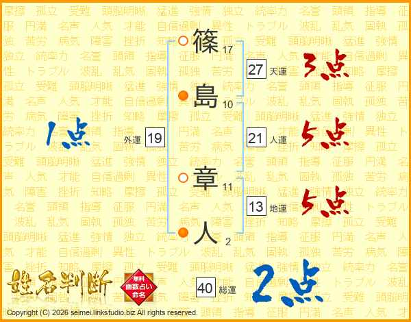 篠島章人さんの人運は21画の5点!