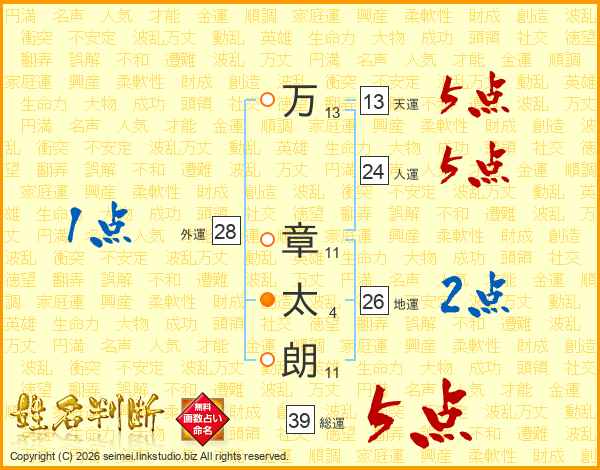 万章太朗さんの総運は39画の5点!