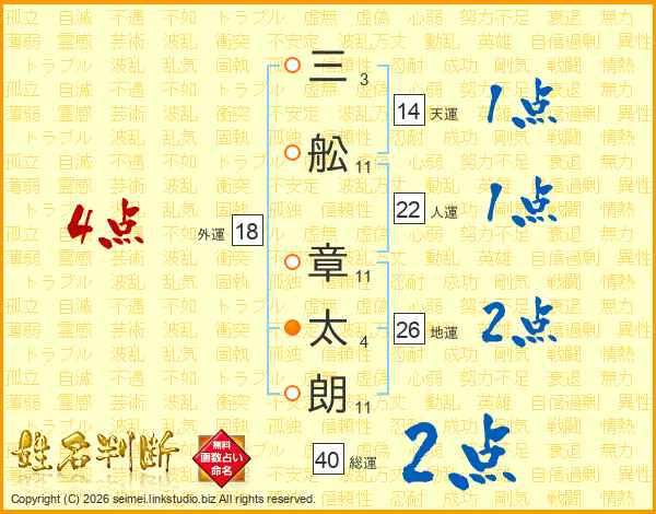 三舩章太朗さんの天運は14画の1点!
