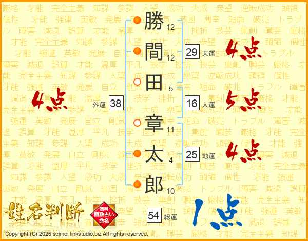 勝間田章太郎さんの天運は29画の4点!