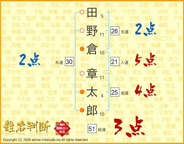 田野倉章太郎さんの天運は26画の2点!