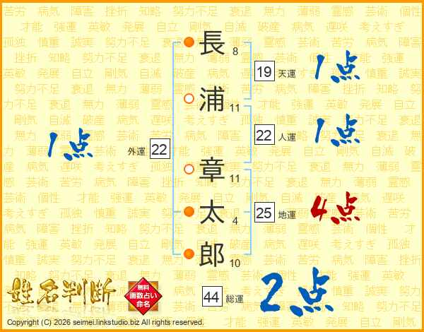長浦章太郎さんの人運は22画の1点!