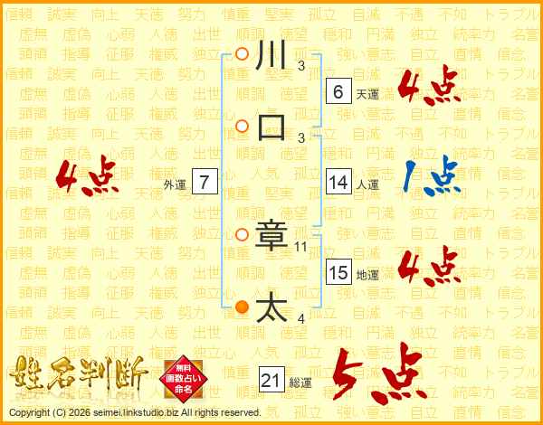 川口章太さんの総運は21画の5点!