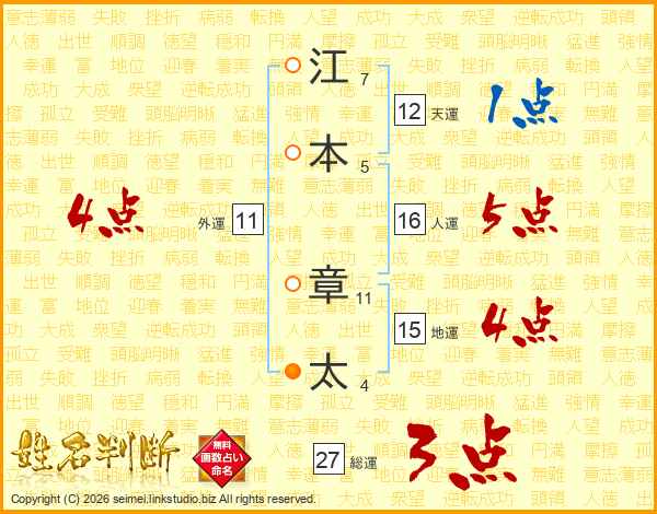 江本章太さんの総運は27画の3点!
