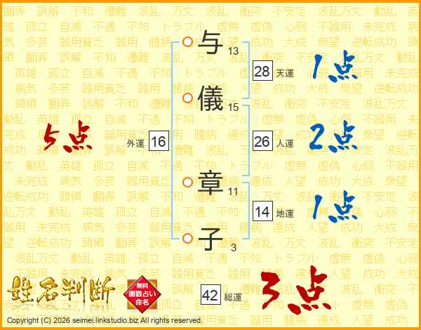 与儀章子さんの人運は26画の2点!