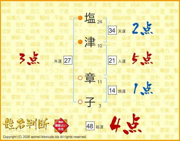 塩(24画)津(10画) 章(11画)子(3画)