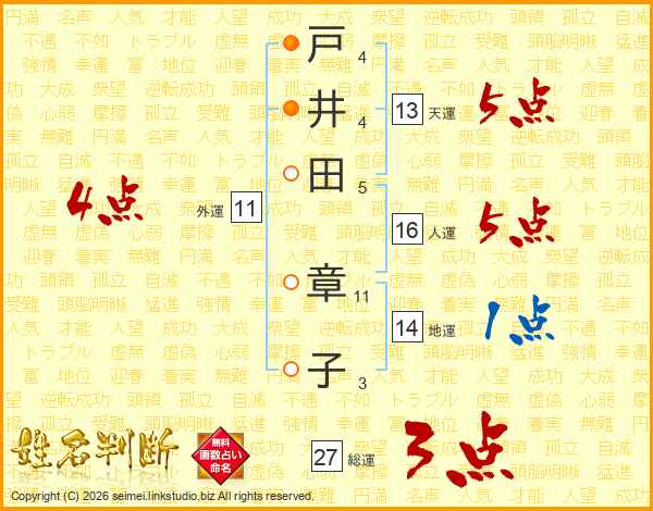 戸(4画)井(4画)田(5画) 章(11画)子(3画)