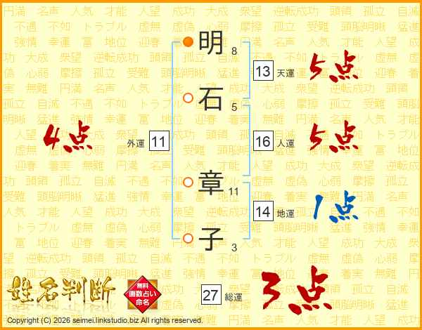 明石章子さんの総運は27画の3点!
