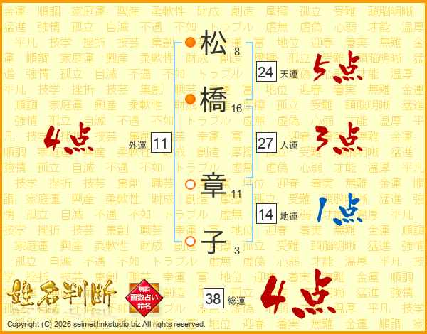 松橋章子さんの総運は38画の4点!