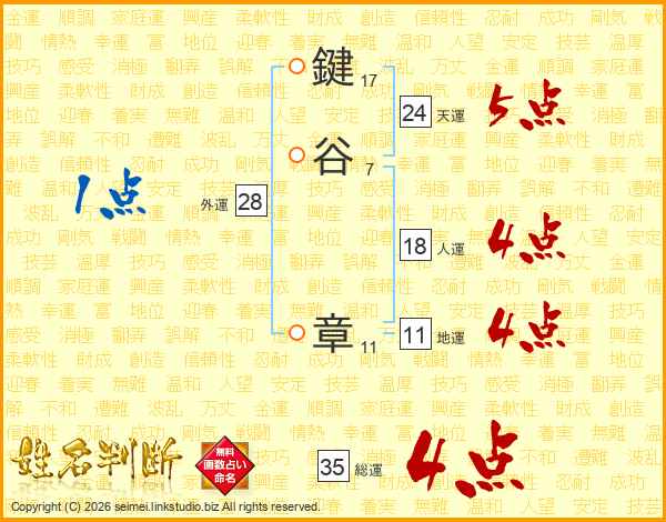 鍵谷章さんの総運は35画の4点!