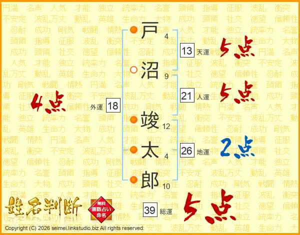戸沼竣太郎さんの総運は39画の5点!