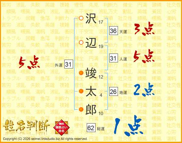 沢辺竣太郎さんの人運は31画の5点!